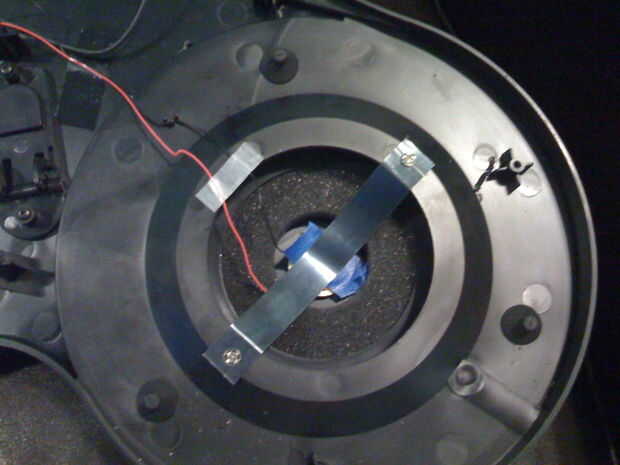 Había montado otro poco de foamcoare al ápice de la primavera, añade un poco de cinta adhesiva para evitar cortocircuitos a través de la primavera y había montado el conjunto por debajo del elemento piezoeléctrico.