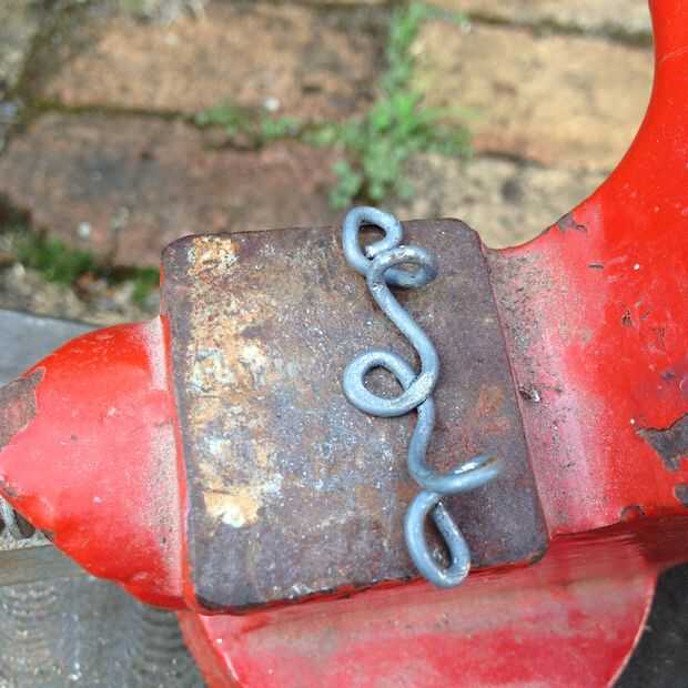 He utilizado un martillo para aplanar los lazos que hice para los tornillos.