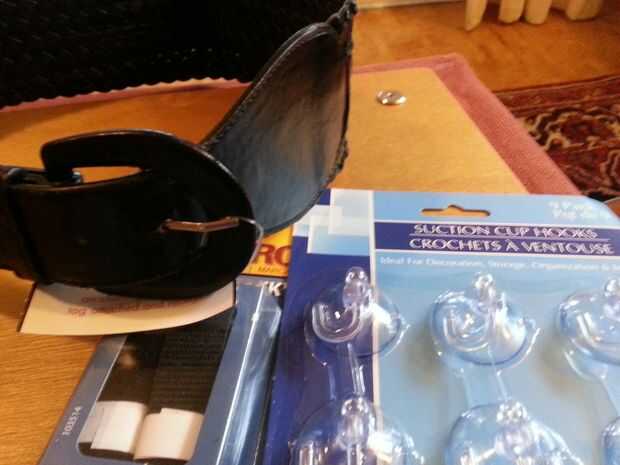 He comprado todos los materiales para este soporte de guitarra DIY (excepto la correa de cuero en una tienda de dólar). Consiguió el cinturón en una tienda de segunda mano.