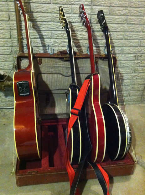 ¿Así que... quieres hacer un trono de guitarra, eh? Así hice yo y esto es lo que se me ocurrió (cuadros 1 y 2). Cuando miré a mi alrededor las interwebs para inspiración, empecé con unas búsquedas en google imagen y encontró unos pocos... aquí hay dos fotos recopilados a partir de la búsqueda (cuadros 3 y 4). Después de revisar la búsqueda, decidí que yo quería hacer un trono que era fácil de montar/desmontar y todos los componentes podrían estar contenidos dentro de la maleta para simplificar el almacenamiento.