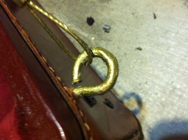 Los ganchos de U revestido de goma fueron atornillados en la tapa de la caja en un ángulo de ~ 45 grados.