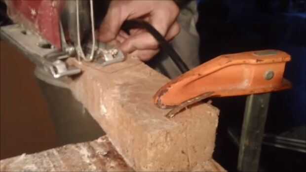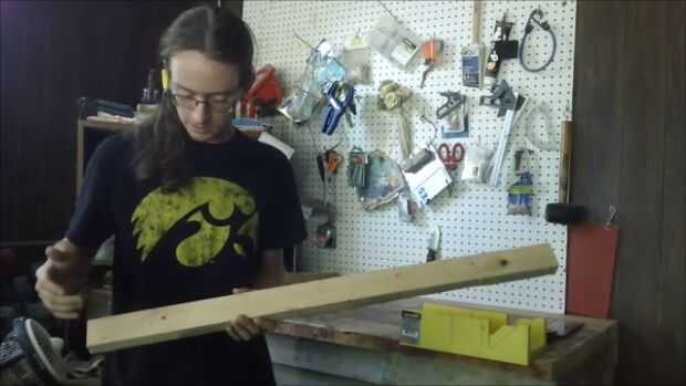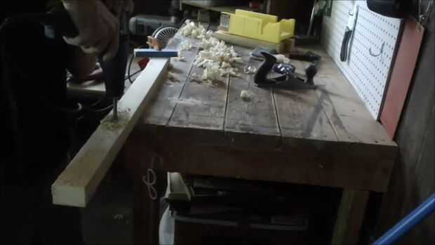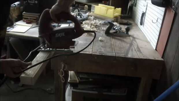 La Junta que empecé con era realmente larga, con las uñas en él. Así que sacó las uñas y cortar los extremos, dejándome con una 36" pulgadas pieza. Me mide 7" abajo y había marcado que para la cabeza del instrumento. Otro 18 1/4" marqué para el cuello, dejando la tercera parte para el cuerpo. A continuación ligeramente cepillada la porción del cuello para darle una superficie lisa agradable. Luego perforé una derecha del agujero en la línea donde el cuello se une con el cuerpo. Marca líneas de 1/4" en a ambos lados de la parte inferior de la madera hasta ese agujero. Luego recortar esa parte con una sierra de calar.