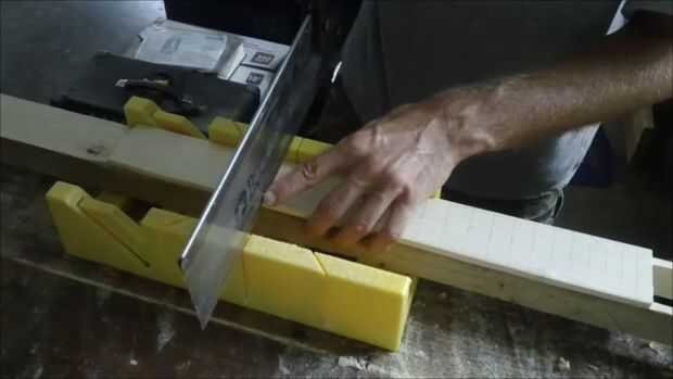 Utilicé una caja de ingletes y una sierra y acaba de hacer unos pases luz para hacer una muesca donde irá mi traste. Compra de alambre de traste real, puede que necesite cambiar un poco este proceso.