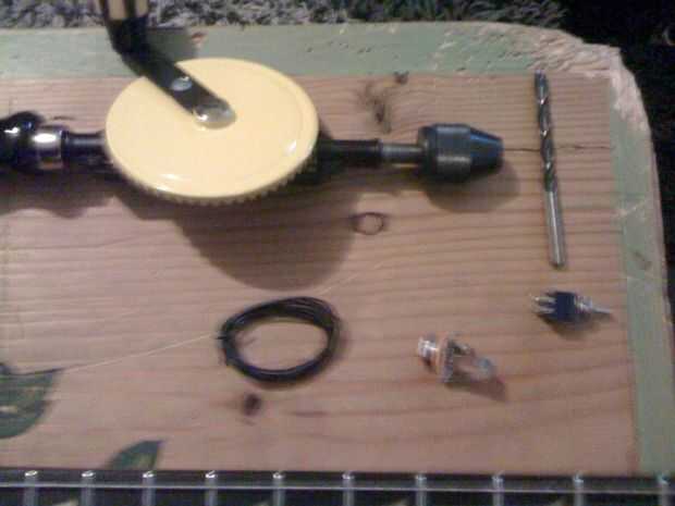 ADVERTENCIA Si romper o dañar la guitarra no soy confiablePaso 1: materiales Un interruptor momentáneoUn alambre de 22 calibreUn soldadorUna guitarraUn destornilladorUn taladroPaso 2: Paso 2 Ahora voltear la guitarra y encontrar la tapa del volumen/g