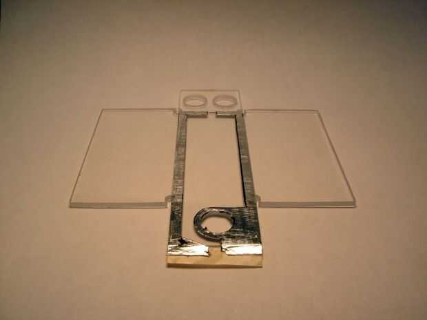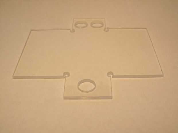 Ya que no tengo acceso a un cortador láser utilicé herramientas de mano. Acrílico puede cortarse con herramientas de carpintería tales como sierras y routers. Plásticos de hoja fina por lo general se pueden cortar con una técnica de puntuación y complemento, que para algunos de los cortes. Sólo usé un Cuchillo navaja afilada para marcar las líneas de corte en varias pasadas, después llevó a cabo la línea contra la esquina de una mesa y con una rápida pero cuidadosa aplicación de fuerza desprendió la pieza. Para algunos cortes usé una sierra para metales con hoja de dientes fina.