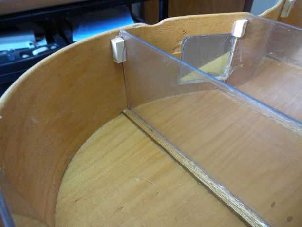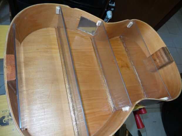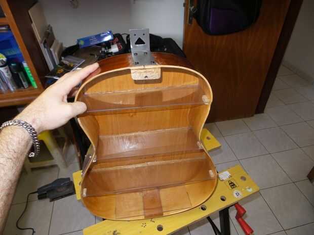 En el exterior (que será muy poco visible) utilicé un lustramuebles (que no deben nunca ser utilizado en un instrumento!).