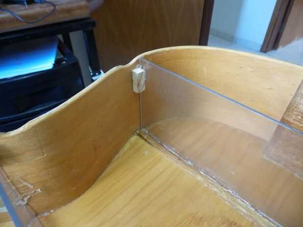 Para una parte externa (ficará bem pouco visível) UE empleo um lustra-móveis (absolutamente não deve ser usado em um instrumento de forma alguma!).