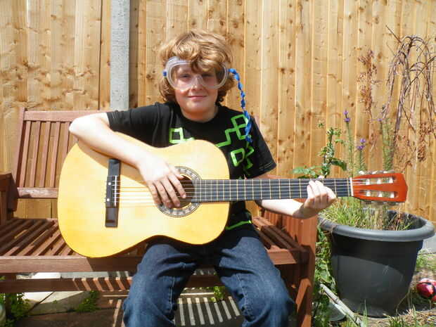 X de la Conker es aprender la guitarra. Es muy motivado porque hemos le dijimos que él puede tener una guitarra eléctrica, pero sólo cuando su maestro de guitarra nos dice es lo suficientemente bueno para uno.