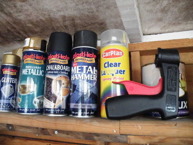 Varios pintan aerosoles. Los colores finales que fueron "Martillado de Metal", "Pizarra negra" y "Brillo de oro".