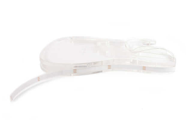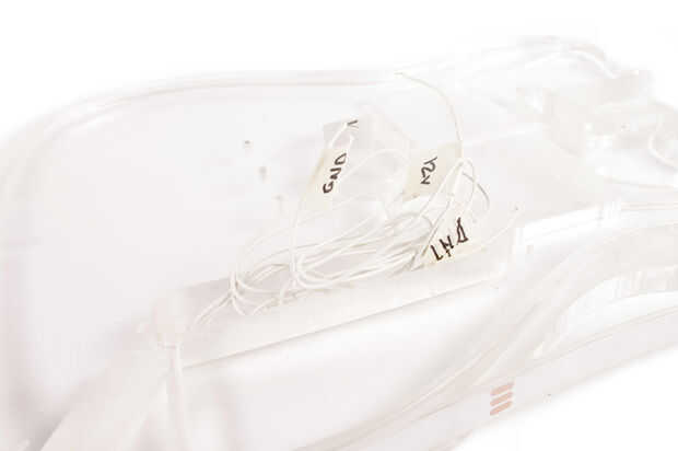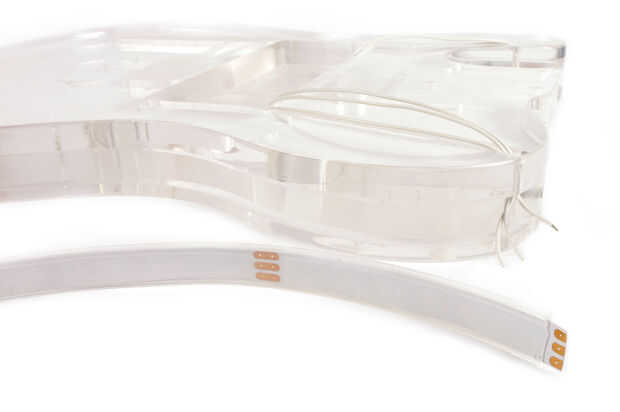 Pasar los cables que han salido de la parte posterior a través del otro 1/4 agujero en el otro compartimiento de LED.