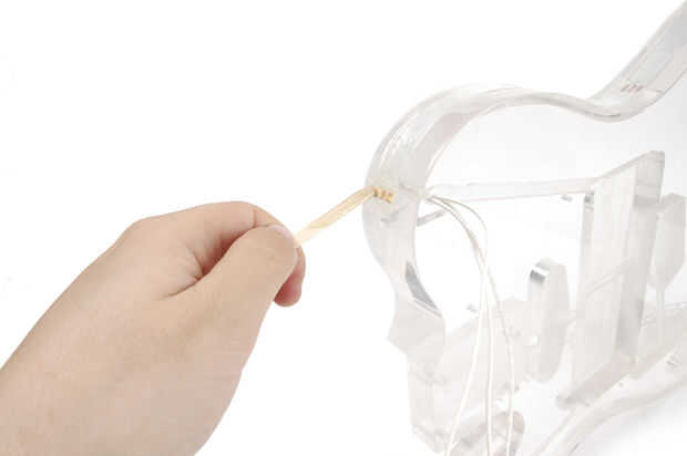 Llene adentro cualquier boquete alrededor de la tira de acrílico con resina epóxica. Esto evitará que entren en el canal durante el chorro de arena arena.