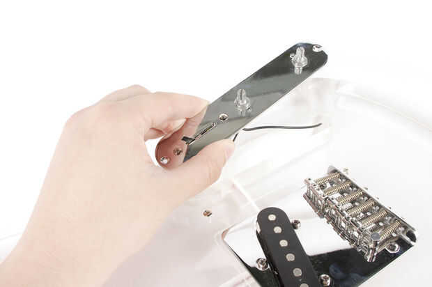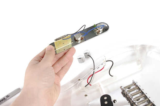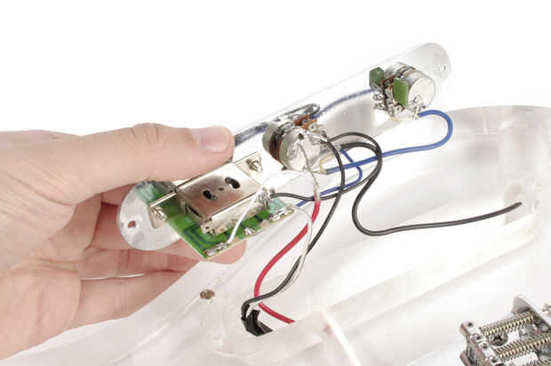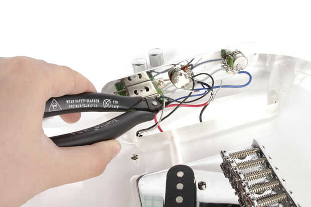 Una vez que esté seguro de que tiene un registro de las conexiones de cableado, cortar los cables para liberar la placa de control completo de la guitarra.
