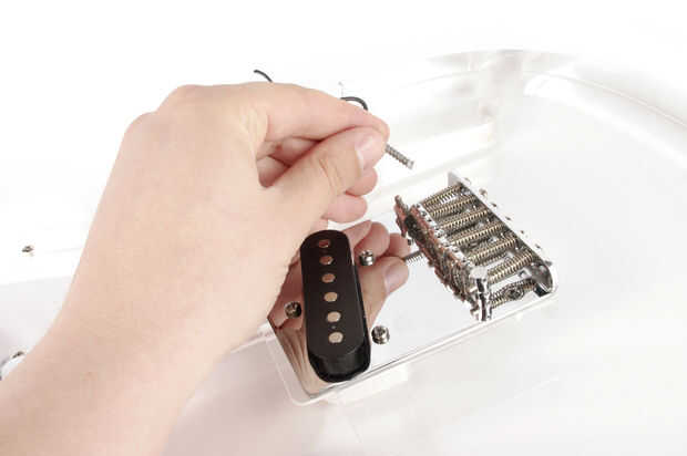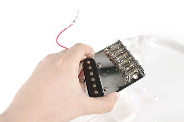 En mi caso, uno de los pickups llegó junto con él. Si tienes una guitarra en la que las pastillas no están vinculadas al puente, quitar por separado de las pastillas.