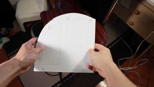 Traza la forma de la guitarra en un pedazo de papel, luego use para cortar una junta a la forma.