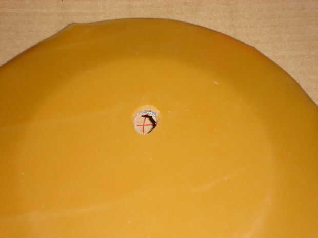 Después de que se hace y seco (y no antes!), cortan el pequeño orificio en la parte superior. Usé un cuchillo del Exacto, puede utilizar lo que tengas. No tiene que parecer perfecto; a conseguir cubrir para cuando monte.