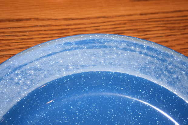 Las planchas de arena donde quiera que va pegado. Sólo usé papel de lija, como curso de como usted puede encontrar. El objeto es solo para desbastar la superficie para que el pegamento se sostenga mejor. La primera imagen es la parte superior de la placa (parte inferior del platillo); Lije todo el camino alrededor. La segunda es la parte inferior de la placa (lo tienes, superior del platillo), donde usted probablemente sólo tiene que ir a 3/4 de la manera alrededor, centrado en la mitad inferior.