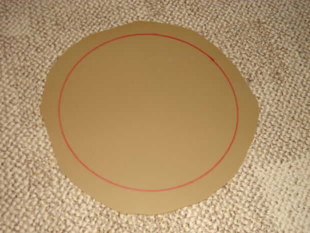 Ponga la placa sobre un pedazo grande de goma y trace el borde exterior. Luego recórtalo alrededor de una pulgada (tal vez pulgadas-y-uno-mitad) más grande. No tiene que ser exacto, esta línea de corte estará en la parte inferior del platillo.