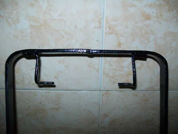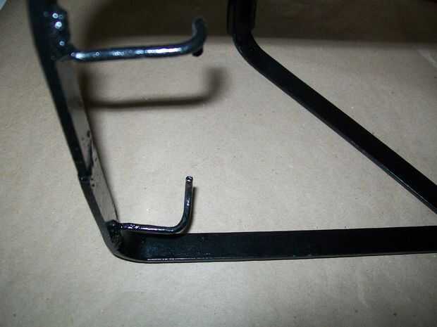 Sus dos "L" y una pequeña curva para poder soldarlas en la distancia medida, por lo que las dos placas de 1/2" se deslice libremente entre ellos; debe haber dos "L" en cada barra: uno corto para la soldadura de propósitos y uno largo para propósitos de la guía. La soldadura "L" debe ser corto y cara exterior y el desplazamiento/parada "L" deben estar dentro (Foto 2). En el cuadro 3, verá cómo debe deslizarse. Asegúrese de que no dejar demasiada distancia entre las dos varillas, porque aunque las heces no se deshagan, cuando usted está sentado en él, si hay demasiada distancia entre ellos, usted conseguirá la sensación de que la materia fecal va a romper. Tan pronto como sus barras están soldadas n lugar, hacer una curva hacia el exterior de las heces como si ya fueron montado. Otra vez la longitud de las barras no es crítica, pero un par de 10-12 cm de varillas se verá mejor. Demostración de los cuadros 4 y 5 que "lo out" debe doblarse sus cañas, como dejan las placas de 1/2 cuando se utiliza la parte superior de materia fecal o doblado.