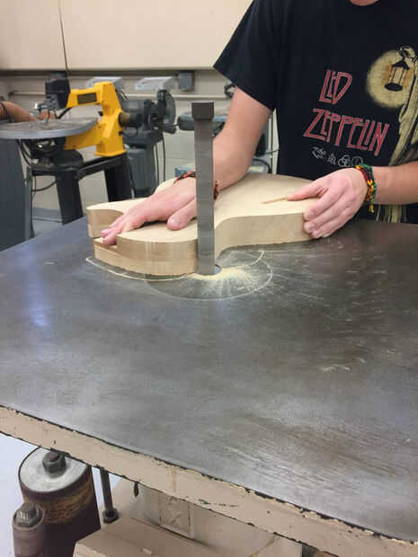 Lijado y formar el cuerpo para ser suave requieren herramientas diferentes para algunas zonas de la guitarra. Para el lijado inicial, use una lijadora de banda para la parte trasera redondeada de la guitarra y una lijadora de husillo para las curvas hacia adentro. Siempre asegúrese de que el movimiento madera. Nunca parada mientras la madera está en contacto con la correa ya que la madera puede ser desigual o quemar. Una vez que la guitarra es más o menos arena, utilizar un papel de arena del grado más fino en la lijadora de husillo para suavizar las curvas y una lijadora de mano para el resto del cuerpo. Si desea añadir cualquier curvaturas en la cara del cuerpo utilizan una lijadora de mano para así.