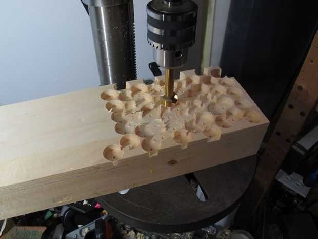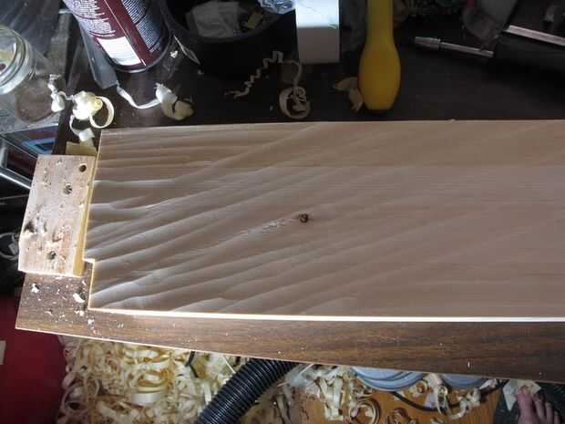 No tengo una cepilladora de grueso, así que corte la primera losa hacia abajo con un plano de matorral que hice por el hierro y la suela de una baja calidad de alisado plano de pulido, pero incluso con los recortes agresivos fue una enorme pérdida de tiempo. El segundo bloque acaba de quitar la mayor parte de los residuos de madera con un 1" forstner broca en el taladro y luego cepillar apagado las hendiduras restantes (a partir del extremo puntiagudo de la broca)