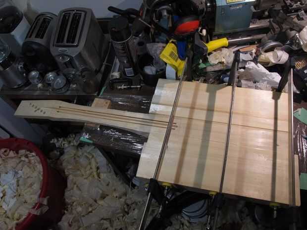 Si usted tiene acceso a una sierra de cinta, ahora es el momento de usarlo. No tengo uno disponible en el momento, así que noqueó a un bulto con el drillpress otra vez. En este caso no voy a través de todo el camino, sólo recortar que el router sólo tenemos que cortar de un lado al seguir la plantilla. Por cierto, creo que en las guitarras de futuro: voy a cortar las cavidades recogidas en esta etapa. Es más fácil equilibrar el router en un tablón grande agradable que en el borde del cuerpo de la guitarra.
