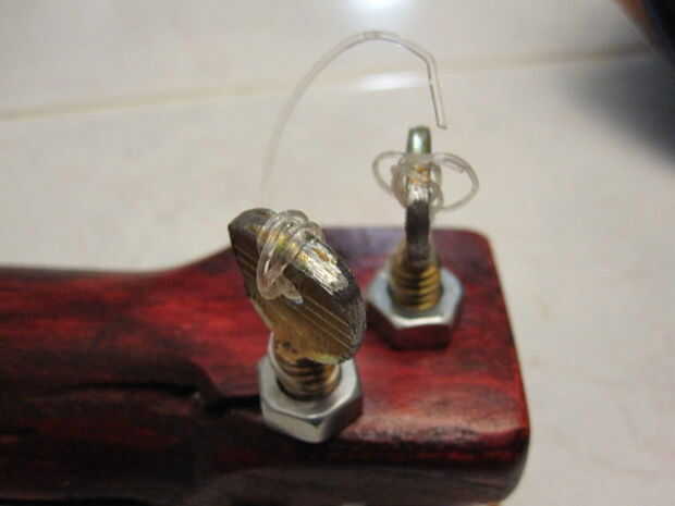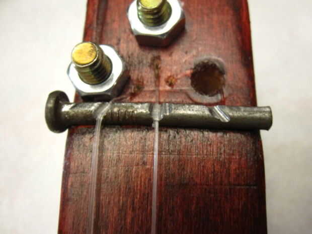 Hice un puente nuevo de un viejo clavo y muescas de Dremel-ed, funciona muy bien!