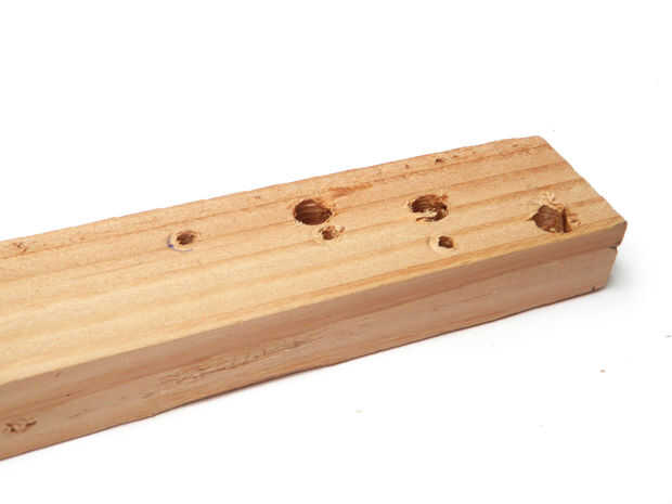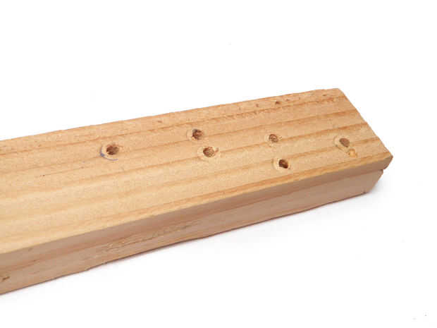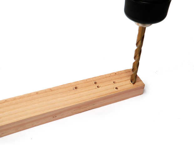 Perforar seis 1/4" a través de 1 x 2 donde sólo había marcado.