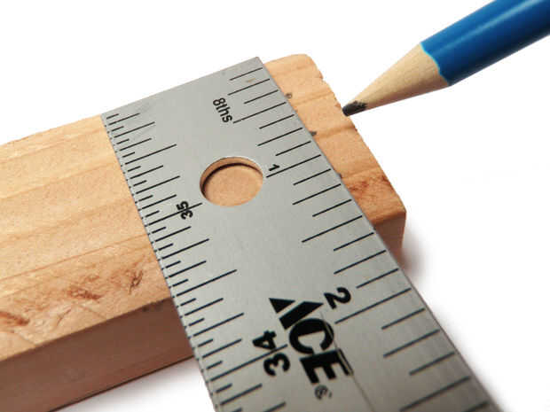 En el extremo opuesto del 1 x 2, hacen tres marcas que son aparte (en 0,375" 0,75" y 1,125") de 3/8", y que son 1/2" del borde de la viga.