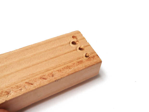 Taladro a través de las 3 marcas que usted acaba de hacer con un taladro de 1/8 bits.