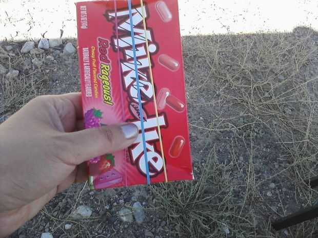 No, no es su técnica de guitarra típica. Coloque su dedo pulgar sobre una de las bandas de goma y apriete una esquina de la caja. De esta forma que retorcer la caja y forma un acorde al mismo tiempo. Cuando se suelta la caja vuelve a su forma original y hace que las cuerdas vibran.