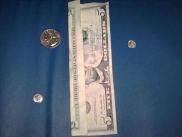 retrato de dólar. Mejor hecho en una factura de $1 o $100 donde la imagen está más centrada. En la parte posterior, la parte superior se pliega en una 90 grados a lo largo del pliegue. La parte inferior se dobla formando un ligero ángulo como se mues
