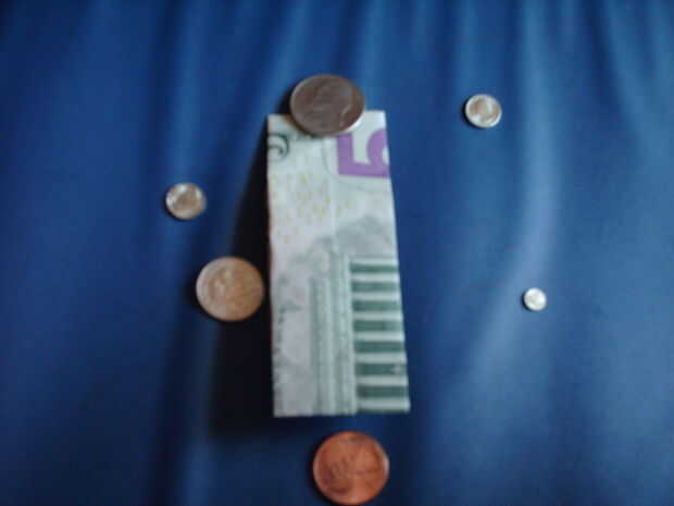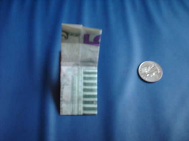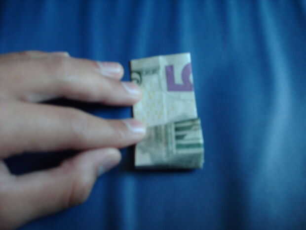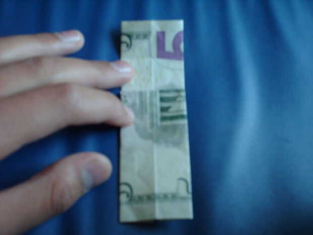 retrato de dólar. Mejor hecho en una factura de $1 o $100 donde la imagen está más centrada. En la parte posterior, la parte superior se pliega en una 90 grados a lo largo del pliegue. La parte inferior se dobla formando un ligero ángulo como se mues