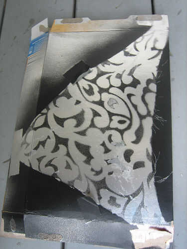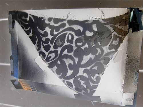 Esto no resulta tan bien, pero cuando invertido los colores en Illustrator, me di cuenta que mejor utilizar negro como capa base y rociar una capa delgada de plata a través de la tela.