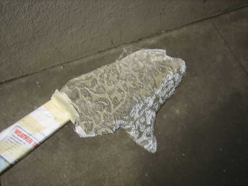 El truco para pulverización a través de este material fue que la luz pasa rápida uno o dos. Cualquiera más haría construir en puntos, que no se ven bien (esto sucedió en unos lugares del cuerpo).