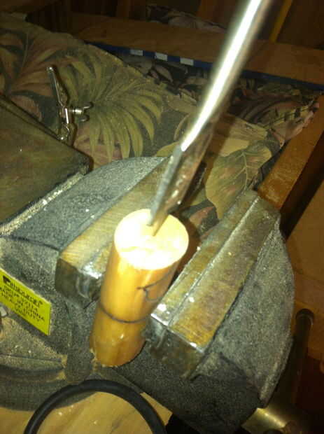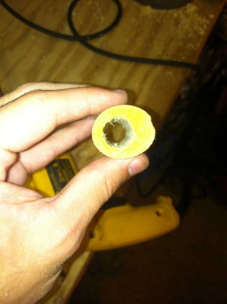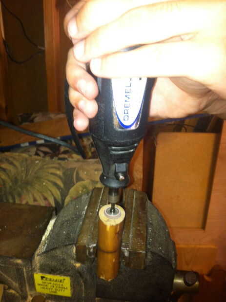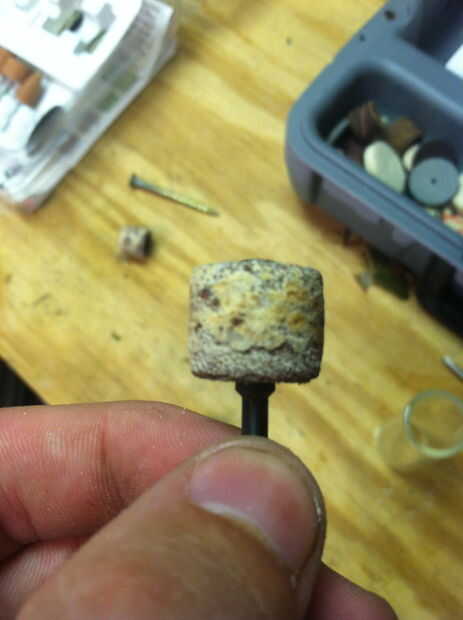 Entonces tomé mi herramienta dremel con un lijado poco y comenzó a taladrar el agujero más y lentamente lo pinky tamaño y luego dedo anular tamaño (yo uso en mi dedo anular)