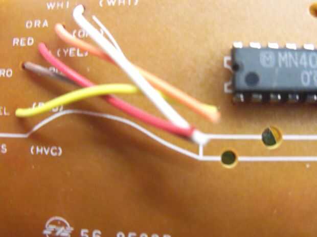 Ahora, en el otro lado de la placa de circuito, ves el principio del cable del controlador, que se ve como cinco cables de colores en un tubo de goma negra, que, no lo necesita.