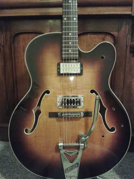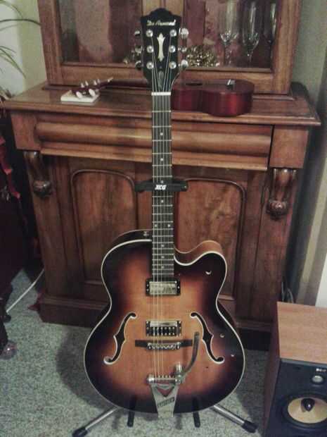 El último bit de perforación era los 4 agujeros pequeños en el marco de recolección, que después de encadenar a la guitarra y ajuste el puente en posición aproximadamente correcta. Esto era muy importante como la nueva camioneta debe estar alineada con el cuello, recogida en el original, el puente y el nuevo trémolo de Bigsby!