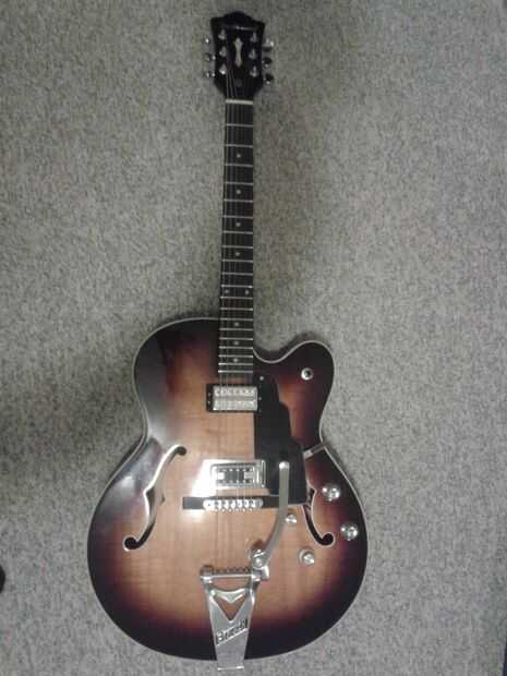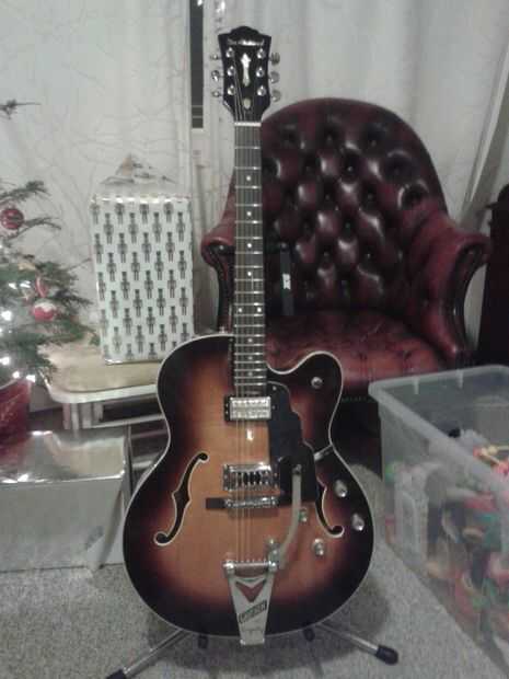 Y allí lo tenemos. Recortado scratchplate se ajuste alrededor de la nueva camioneta, enchufar la guitarra en, y sonaba muy bien!