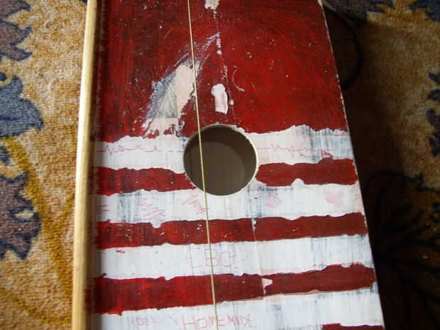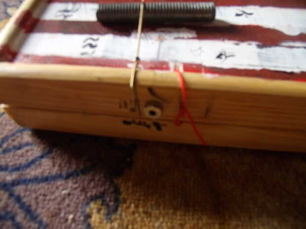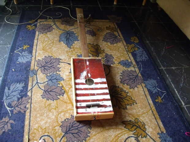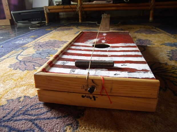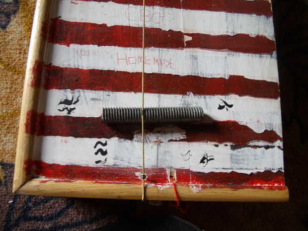un elemento piezoeléctrico, jack de audio hembra de 1/4, cuerda de guitarra y un trozo de metal. como se puede ver que una cadena es falta, esto es porque aún no he encontrado la cadena de sonido «derecho» para acompañar a la primera de ellas. la también eléctrica pero en vez de un 1/8 quería algo más... adecuado para mi presupuesto ya que no tengo un amplificador. y tengo una radio con una entrada aux.