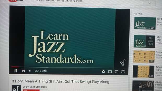 • Usted puede encontrar una pista de acompañamiento para casi cualquier melodía jazz en YouTube.