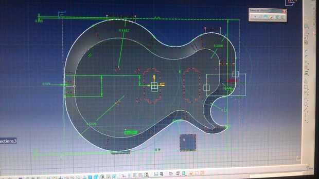 Entonces, hice un dibujo que parece una gibson, pero todo por mi así que no es exactamente el mismo tamaño. Y la parte superior tallada.