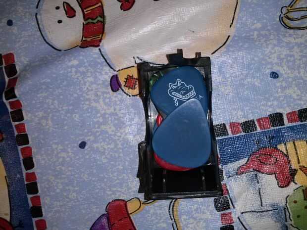 este es mi kit de supervivencia de la guitarra. Aquí es algunas cosas están muy bien para tener con usted si tocas la guitarra eléctrica.En el kit encontrarás:-Un adoptante-Un sintonizador de-Una selección del pulgar-selecciones 3 normalSi tienes una