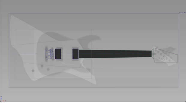 Utilicé el ordenador para la fase de diseño. He superpuesto dos guitarras de referencia en photoshop y bajar su opacidad para crear una 'bosquejo de la arpillera' con el tamaño correcto y las proporciones de lo que estaba diseñando. Trate de no influencia dejó el 'bosquejo arpillera' real diseño o acabará con algo que tiene el mismo aspecto como su referencia. Uso más o menos, que captura el tamaño general y corregir 'fuera de la plataforma' piezas de tamaño y la ubicación si es pertinente. Haciendo esto en el ordenador, tenía algo para bosquejar sobre ya sea imprimiendo al bosquejo a mano o continuar bosquejar hacia fuera en el ordenador.