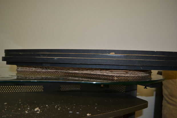 Cuando usted es hecho con una cubierta de la pila con algo plano y rígido, como madera contrachapada y luego coloque un poco de peso en la parte superior. Utiliza una pila de partícula 3/4" cuatro piezas del tablero como la cubierta y el peso. Dejar las piezas a curar hasta que son secos, aproximadamente 24 horas (el peso puede ser quitado si es necesario después de mucho menos tiempo).