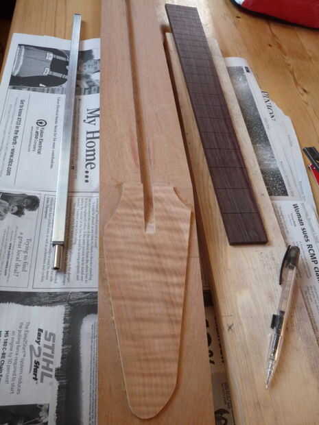 Una vez hecho este trabajo, puede pegar el tablero de trastes en el cuello.
