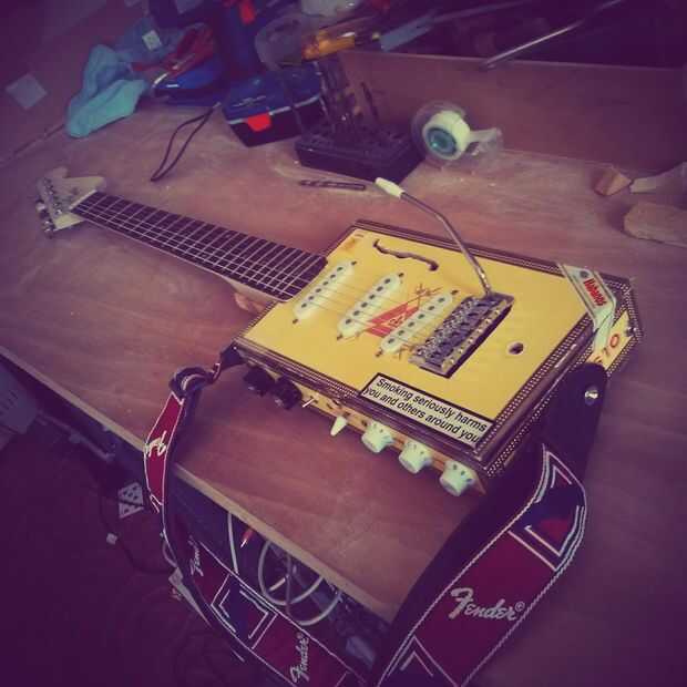 Cómo hacer una guitarra de la caja de cigarro eléctrico por $25