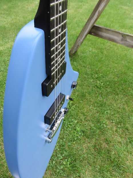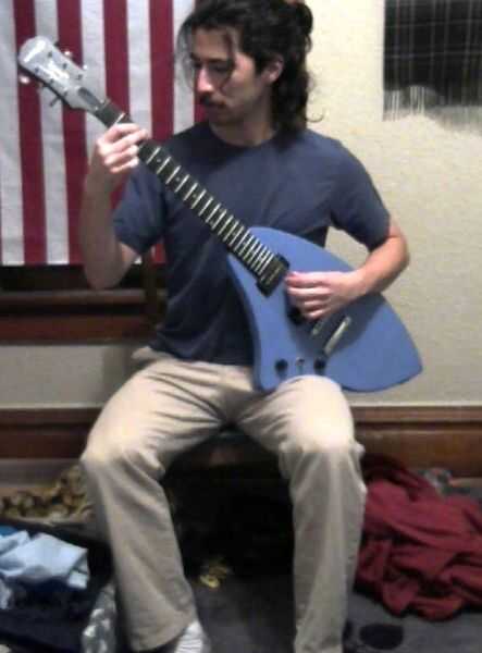 Comenzó a tocar la guitarra eléctrica hace aproximadamente un año y creció rápidamente con la ergonomía de la posición sentada. Con una guitarra eléctrica tradicional (Les Paul Special, en mi caso), el cuello es más o menos horizontal. Esto hace que el hombro derecho para ser levantado y la muñeca izquierda que se doblará excesivamente. La pierna derecha es generalmente apoyada demasiado, causando presión desigual de la sesión.