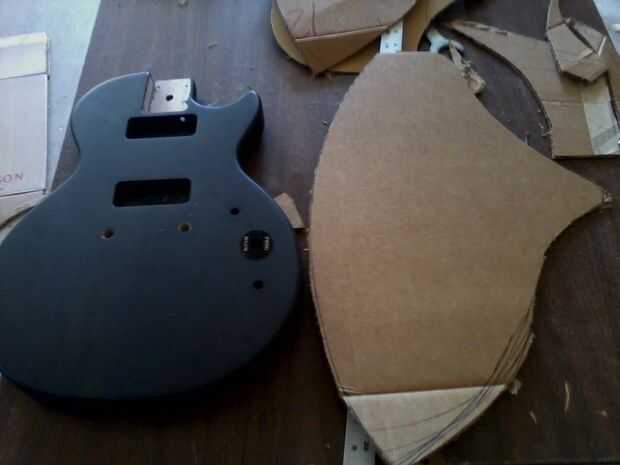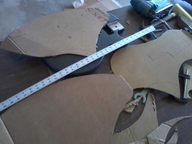 Una vez que tengas una idea general en mente, hacer un par de plantillas de cartón. Estos le dará una buena idea de la posición de rasgueos y el ángulo del cuello.