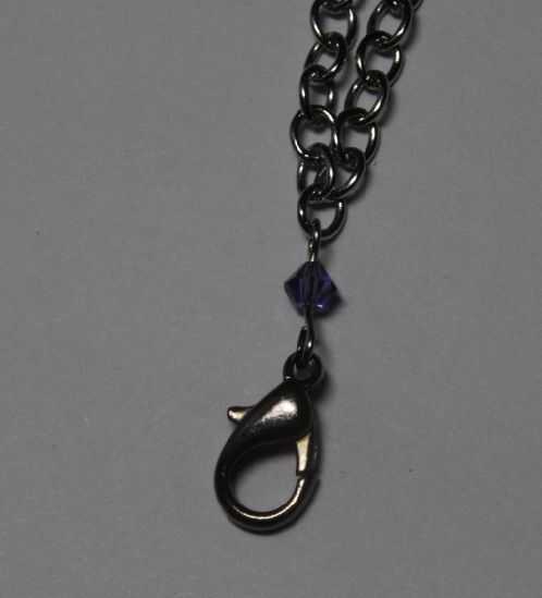 Este collar utiliza un corchete de la langosta grande unido a la cadena para sostener el pico, por lo que fácilmente puede ser eliminado y reemplazado. Por agujeros más grandes en la selección, el collar podría incluso llevar a cabo dos o tres a la vez.