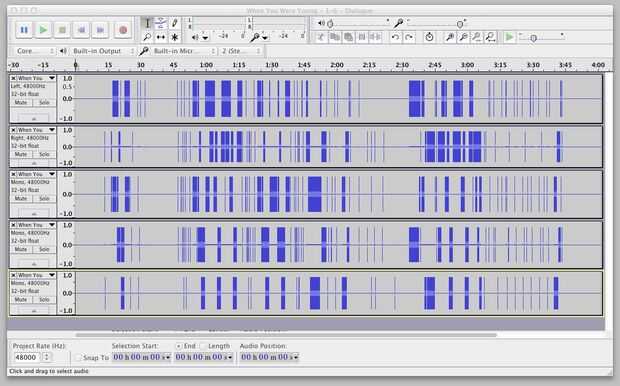 -Usted recibirá una advertencia de que la pista se mezclarán a un solo canal mono. Esto es exactamente lo que queremos, porque crea una pista de audio para el botón de golpe.
